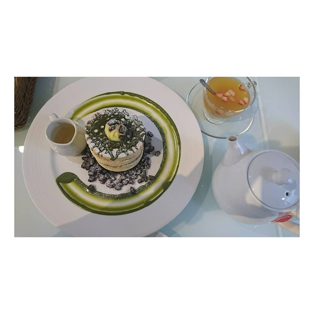 第一張是抹茶鬆餅和熱水果茶。抹茶有它特有的苦味並不會太甜,配上甜而不膩的紅豆是綜合了兩者味道,而熱水果茶除了原本杯裡的水果丁之外,本身的茶偏酸茶香很濃不過怕酸的,其實可以等到比較涼了再喝就不會那麼酸。